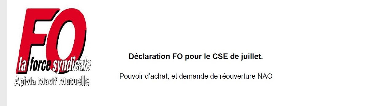 APIVIA MACIF MUTUELLE DÉCLARATION FO AU CSE DE JUILLET. POUVOIR D’ACHAT ET DEMANDE DE RÉOUVERTURE NAO Lire la suite » juillet 28, 2022