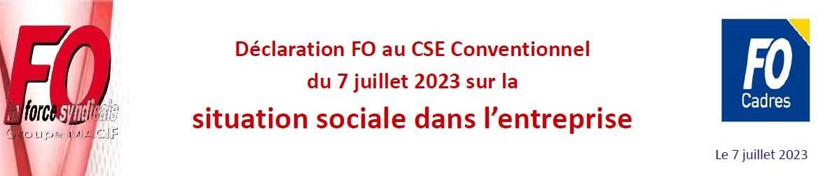 CSE CENTRAL Déclaration FO au CSE Conventionnel du 7 juillet 2023 sur la situation sociale dans l’entreprise Lire la suite » juillet 7, 2023