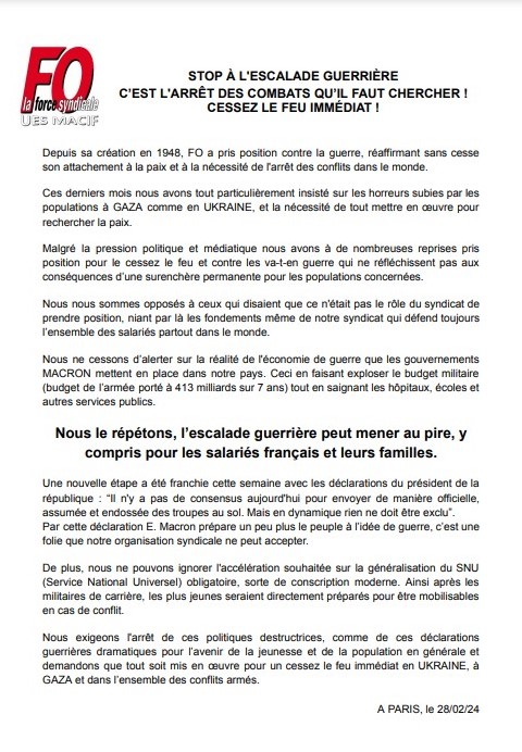 TRACTS STOP À L’ESCALADE GUERRIÈRE C’EST L’ARRÊT DES COMBATS QU’IL FAUT CHERCHER ! CESSEZ LE FEU IMMÉDIAT ! Read More » mars 4, 2024 Aucun commentaire